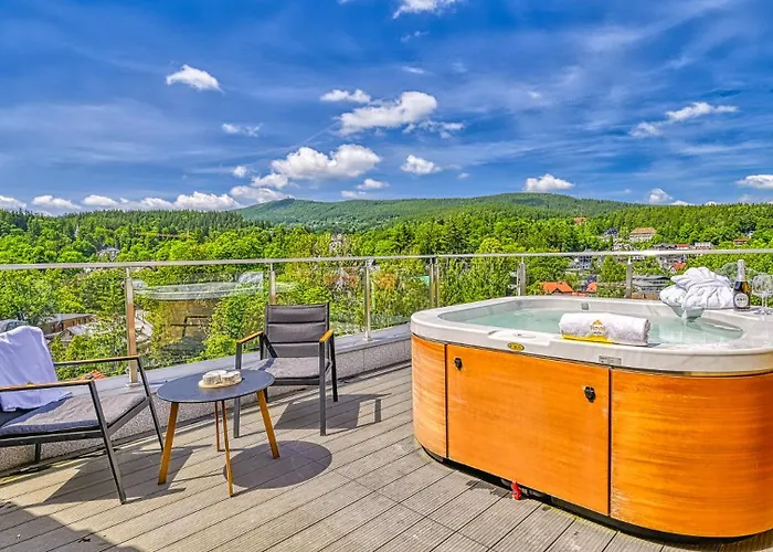 Estação de ônibus Szklarska Poreba Gorna está de 10 minutos a pé daqui. O apartamento fornece Jacuzzi, banheira quente e sauna e piscina para uso exclusivo dos hóspedes.